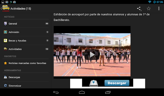 Como sabéis, el centro dispone de una app para Android tanto para smartphones como para tablets. En su nueva versión 2.0. presenta novedades como una estructura más intuitiva. De tal modo, desde la aplicación podemos tener acceso y activar las notificaciones de todas las novedades que se vayan incluyendo en la web del Colegio. Entre otras novedades, se pueden marcar noticias como favoritas para tener un acceso rápido a las mismas.